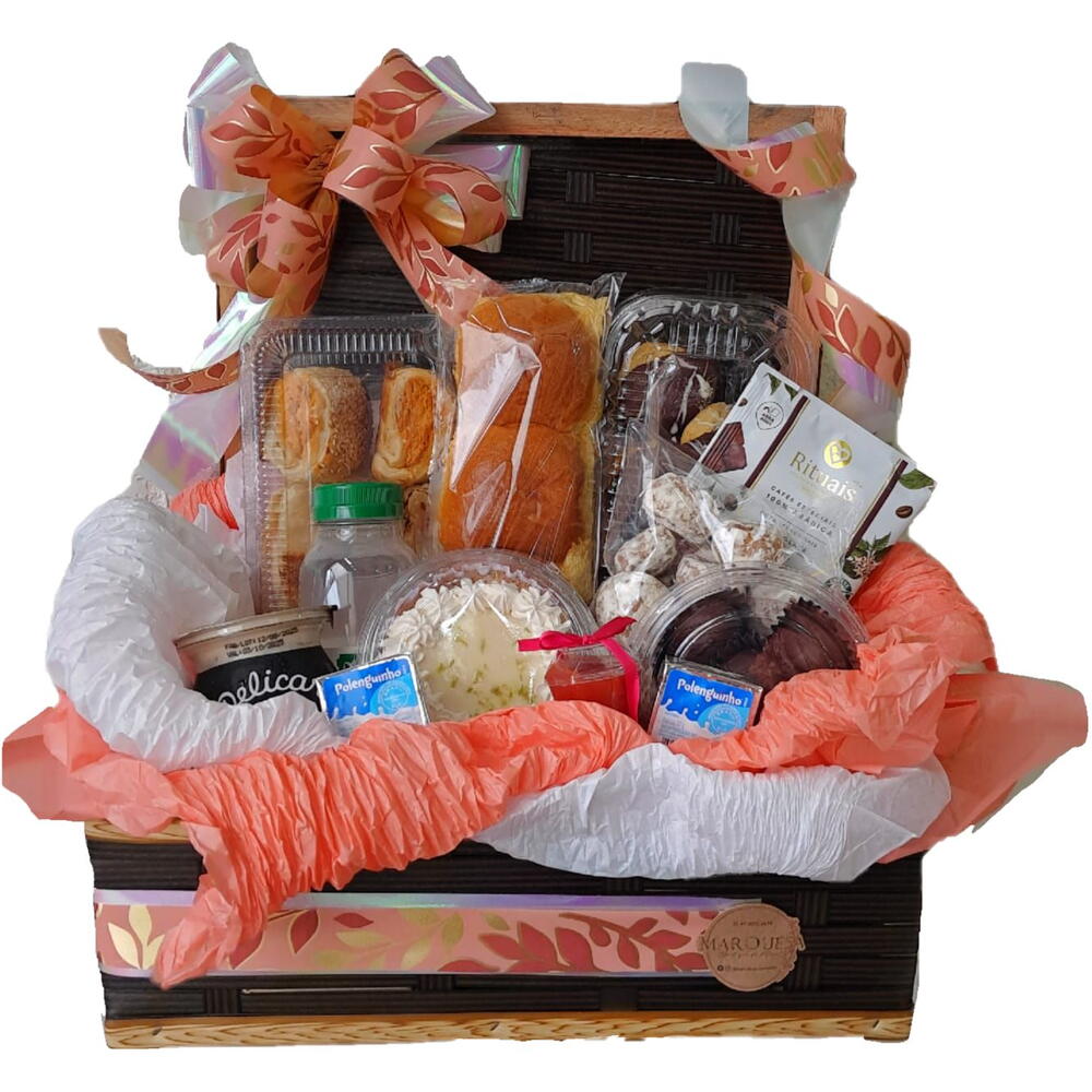 iogurte - 1 un. água de coco - 1 un. drip coffe - 1 un. torta individual - 1 un. porção de pão - 1 un. porção de salgados - 1 un. porção de brigadeiros - 1 un. bandeja individual de carolinas - 1 un. bandeja individual de amanteigado - 1 un. geléia individual - 1 un. cream cheese individual - 1 un.
