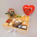 fruta - 1 un. sucos - 2 un. mini geleia queensberry - 1 un. bandeja de madeira pinus - 1 un. cappuccinos - 2 un. magic toast torrada - 1 un. porção de cookies artesanais - 1 un. saco transparente e laço para embrulho - 1 un. croissants caseiros g - 2 un. pão de batata caseiro - 1 un. bolo mini vulcão - 1 un. sachês de mel - 2 un. balão de coração com frase temática de dia das mães - 1 un. planta kalanchoe no jarro - 1 un. porções de biscoitos artesanais aprox: 100g cada - 2 un. porção de waffles (precisa ir ao forno por 5 minutos ou até ficar amarelinho) - 1 un.