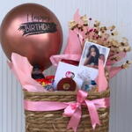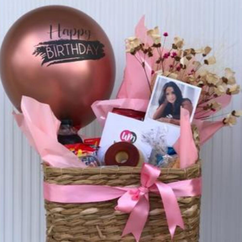 arranjo - 1 un. croissant - 1 un. iogurte - 1 un. suco - 1 un. balão - 1 un. achocolatado - 1 un. biscoito salgado - 1 un. biscoito doce - 1 un. chocolate amandita - 1 un. pudim de leite - 1 un. bolo no pote - 1 un. delícias de goiaba - 1 un. sache de cereal - 1 un.