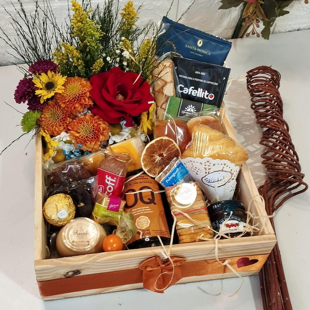 Box Café Delicate é o mimo perfeito para abrilhantar suas manhãs e tardes em qualquer ocasião. Um presente que transborda carinho, encanto e magia para quem o recebe, tornando-se surpreendentemente marcante. Contém: 1 Arranjo floral botão de rosas e flores naturais 1 Croissant amanteigado 1 Suco integral (de acordo c/a disponibilidade do Dia) 1 Sachê de chá 1 Sachê de café especial trip especial 1 Saché de capuccino 1 Saché c/Torradas 1 Saché biscoito folhados 1 Geleia importada 2 Queijos em fatias 1 Queijos poleguinhos 2 Cookies sabores diferentes 2 Pãozinhos 1 Sobremesa 1 Bombom de pistache 1 Bombom Ferrero Rocher Obs. Os Arranjos São De Flores Naturais. Por Esse Motivo Os Arranjos Será Montado De Acordo Da Disponibilidade Das Flores E Rosas Disponíveis do Dia. Mas Sem Deixar O Charme E O Encanto De Lado, Muito pelo Contrário Sempre Algo Cada Vez Mais Lindo Aviso Importante A Recafi Cestas preza pela qualidade e excelência em cada detalhe. Informamos que, devido à sazonalidade ou disponibilidade do Dia, reservamo-nos o direito de substituir itens ou marcas de produtos por equivalentes de padrão igual ou superior, sempre mantendo a harmonia e a proposta Original da cesta escolhida. Agradecemos a compreensão e a confiança em nosso trabalho.