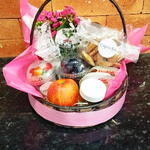 nutella - 1 un. iogurte - 2 un. maçã - 1 un. cesto de vime - 1 un. uva - 125 gr. pão de forma - 2 un. morango - 125 gr. flor kalanchoe; - 1 un. kit embalagem com laço personalizado e saco transparente - 1 un. bolachinha de leite - 10 un. balão personalizado (enviar o nome no chat) - 1 un.