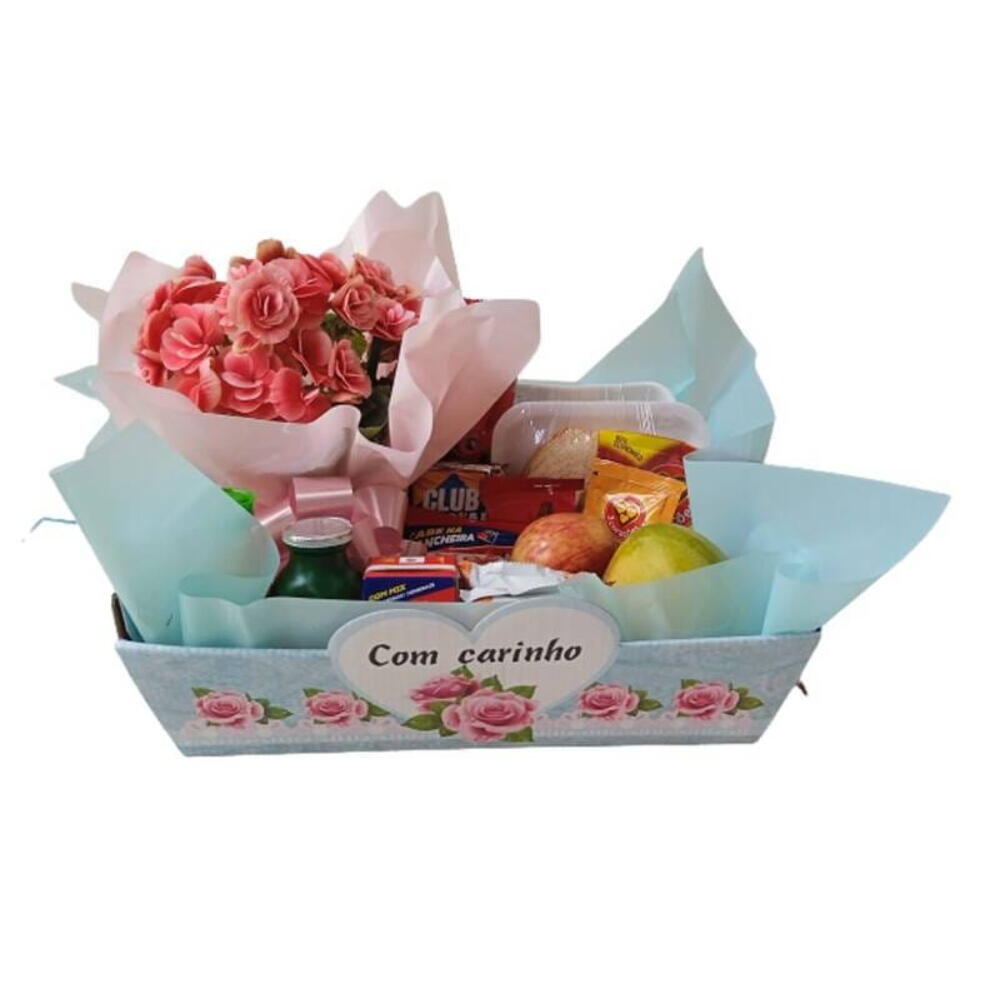 Delicie-se com a nossa Cesta de Café da Manhã! Um conjunto verdadeiramente irresistível que inclui uma elegante bandeja cartonada contendo uma seleção de guloseimas. A bandeja possui uma caneca de porcelana ou kalanchoe, perfeita para o seu café, suco ou iogurte. Também incluímos uma variedade de frutas frescas, incluindo uma maçã e uma manga para iniciar bem o dia. Além disso, a cesta contém duas torradas crocantes e saborosas, acompanhadas de geleias e manteigas individuais. Para uma experiência completa, há também um chá, sachê de capuccino e café solúvel. Adicionalmente, a cesta é complementada com um sanduíche de queijo, um mini bolo delicioso, cereal matinal e vários snacks, como biscoitos Club Social, cookies tentadores e um irresistível pão de mel. Ideal para presentear ou desfrutar de um luxuoso café da manhã caseiro!