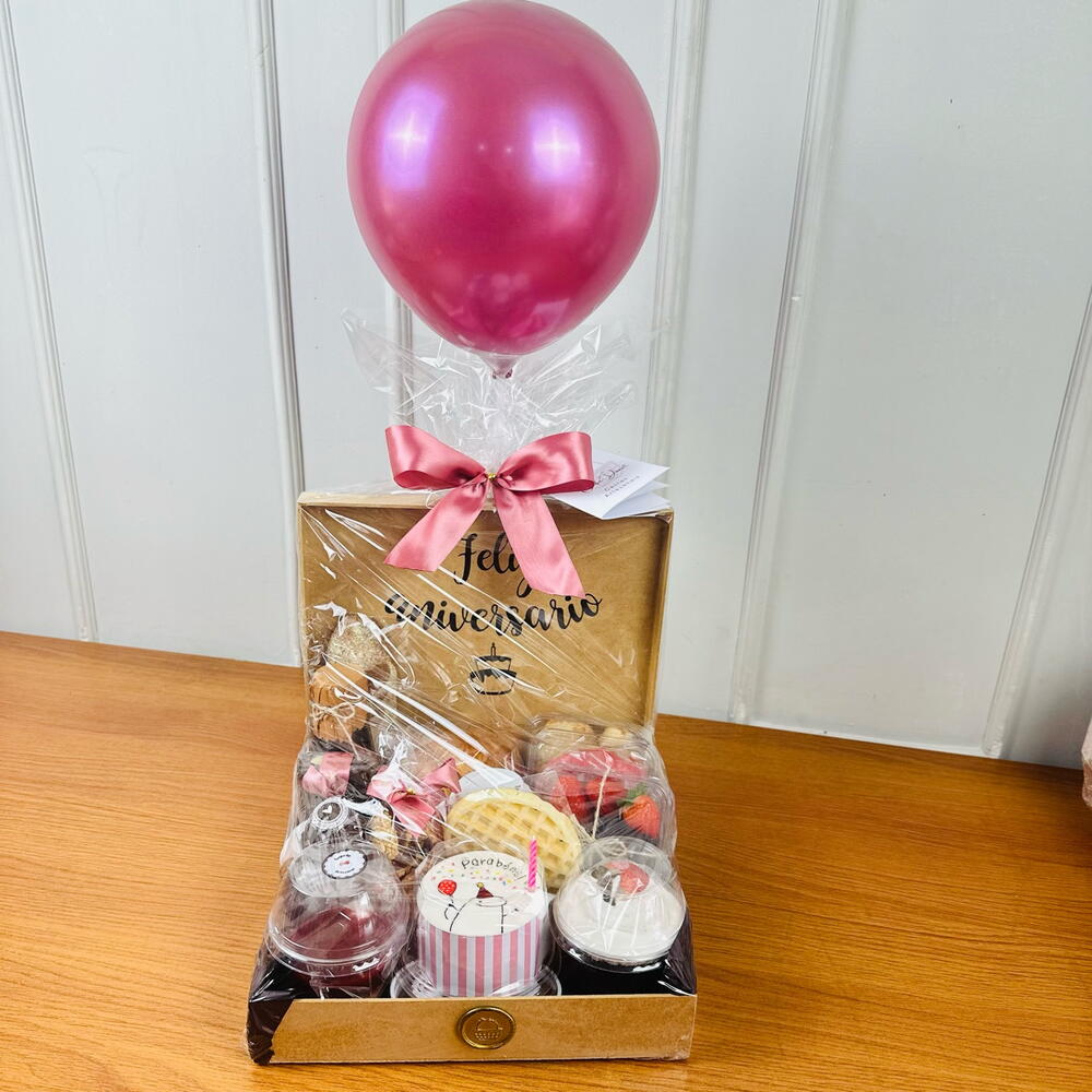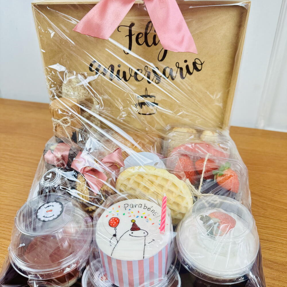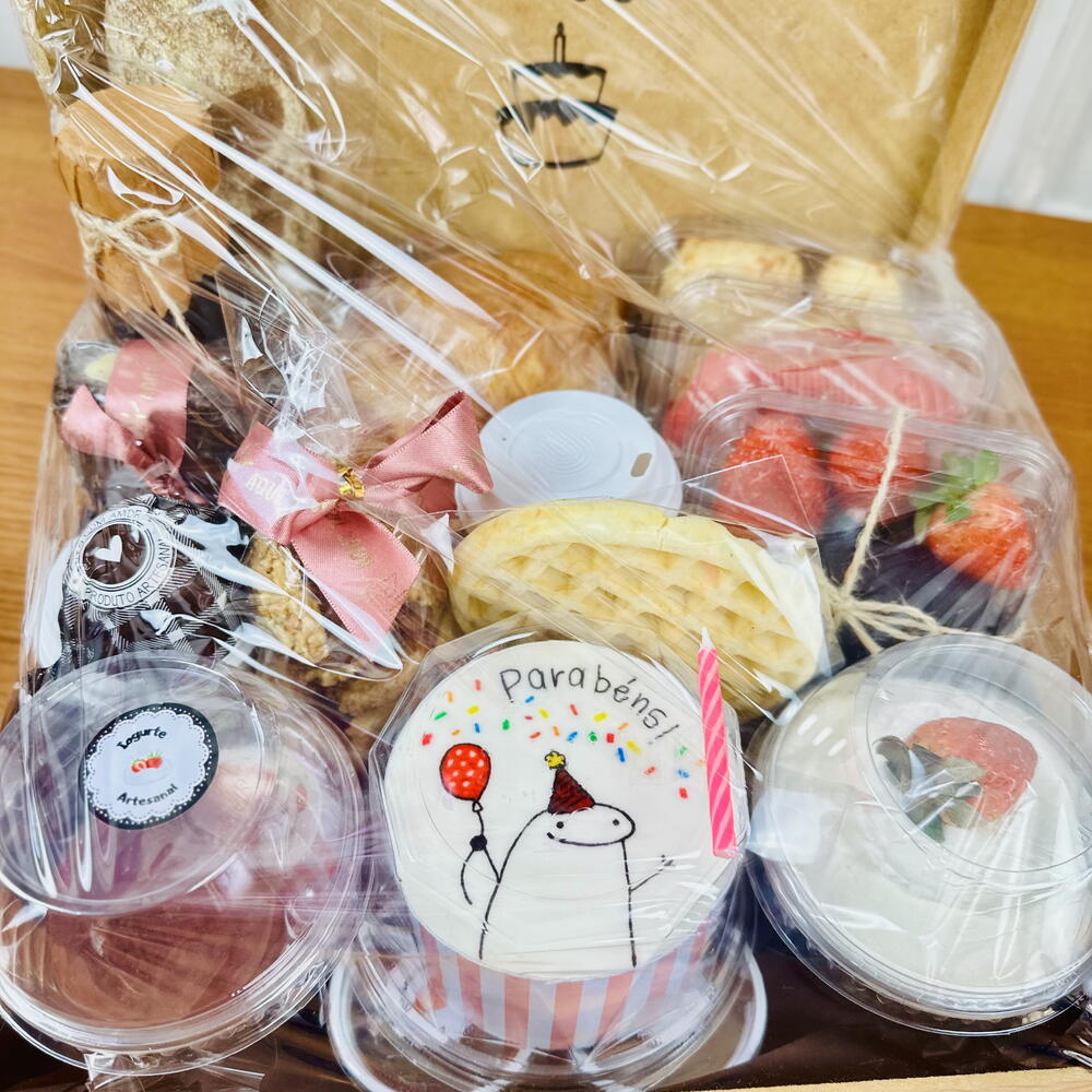 Presenteie com amor e sabor com a nossa Cesta de Aniversário Gourmet. Cada item foi seleto para oferecer uma experiência única durante o café da manhã ou lanche da tarde. A cesta inclui uma unidade de deliciosa Nutella e chocolate, para uma sobremesa indulgente. Desfrute de um croissant fresco e o iogurte gelado acompanhado de um suco para dar um bom início ao dia. Experimente quatro saborosas torradas untadas com manteiga ou requeijão. Para aumentar o prazer, acrescentamos um capuccino e queijo com presunto para incrementar a variedade. A pasta de frango e a geleia artesanal são itens indispensáveis em qualquer mesa de café da manhã, trufa de chocolate e mix de biscoitos finos prometem elevar essa experiência. Oferecemos também um pedaço da tradicional baguete australiana combinada com o delicado sabor dos pães de queijo médios. O momento se torna ainda mais especial com um pedaço do maravilhoso bolo de chocolate belga com recheio e chantilly, um bolo de aniversário com velinha, donuts e delicioso brownie recheado com Ninho. Por fim, um mix de uvas e morangos frescos para equilibrar a experiência. Todos esses itens são cuidadosamente embalados em uma caixa de madeira 30x30, com um laço, cartão e balão para finalizar com um toque festivo. Surpreenda quem você ama com essa cesta de aniversário exclusiva!