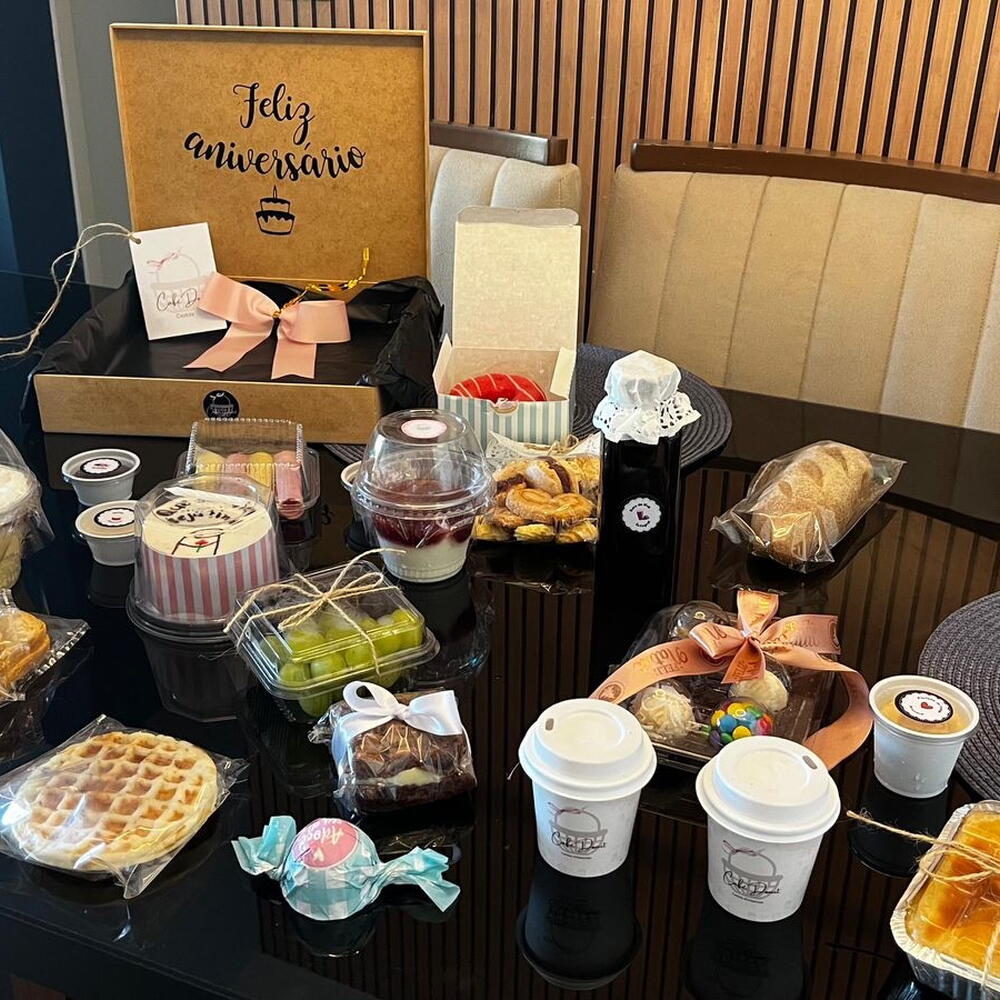 Cafe na Caixa de Aniversario com Bolo Bento e balão