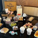 nutella - 1 un. chocolate - 1 un. croissant - 1 un. iogurte - 1 un. suco - 1 un. waffer - 1 un. torrada - 4 un. manteiga - 1 un. capuccino - 1 un. requeijão - 1 un. queijo e presunto - 4 un. pasta de frango - 1 un. geleia artesanal - 1 un. baguete australiana - 1 un. trufa de chocolate - 1 un. mix de biscoitos finos - 1 un. pão de queijo medio - 4 un. caixa de madeira 30x30 - 1 un. laço cartão e balão - 1 un. bolo de chocolate belga com recheio e chantilly - 1 un. bolo bebto de aniversário com velhinha - 1 un. rinhg donuts - 1 un. brownie recheado ninho - 1 un. frutas ( uva e morango ) - 1 un.