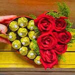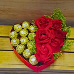 Caixa Box Coração com Rosas Vermelhas e Ferrero Rocher – Um presente que conquista corações! Surpreenda quem você ama com esta elegante Caixa Box em formato de coração, que combina a beleza das rosas vermelhas frescas com a sofisticação dos bombons Ferrero Rocher. Uma forma perfeita de demonstrar carinho, paixão e delicadeza em uma única embalagem. O que você encontra nesta caixa especial? 6 rosas vermelhas fixadas cuidadosamente em esponja floral, garantindo frescor e durabilidade. 12 bombons Ferrero Rocher, conhecidos mundialmente pelo sabor irresistível e textura única. Caixa box em papelão duro, com formato de coração, medindo 12 cm de altura, 15 cm de profundidade e 20 cm de comprimento — tamanho ideal para encantar e impressionar. Por que escolher esta Caixa Box coração com rosas e Ferrero Rocher? Este presente é a combinação perfeita entre o clássico e o sofisticado, ideal para diversas ocasiões, como aniversários, Dia dos Namorados, ou simplesmente para surpreender alguém especial. A união das rosas vermelhas, símbolo do amor, com os bombons premium, proporciona uma experiência única que toca o coração. Dicas para aproveitar ao máximo seu presente Mantenha as rosas em local fresco e fora da luz solar direta para preservar sua beleza. Aproveite os bombons em momentos de celebração ou para adoçar o dia de quem você ama. Esta caixa charmosa também pode ser reutilizada para guardar pequenos objetos, tornando-se uma lembrança duradoura. Garanta já a sua Caixa Box Coração com Rosas Vermelhas e Ferrero Rocher e transmita todo seu amor com um presente cheio de estilo, sabor e emoção!