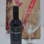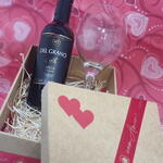 bombom ferrero rocher com 3 unidades - 1 un. caixa de mdf com tampa - 1 un. taça de vinho de vidro - 1 un. vinho seco del grano - 1 un.