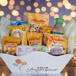 bolinho bauducco - 1 un. torrada bauducco - 1 un. cesta - 1 un. laço - 1 un. club social - 1 un. barrinha chocolate - 1 un. pão de mel bauducco - 1 un. embalagem celofane - 1 un. margarina sachê - 1 un. biscoitinhos balducco - 2 un. suco natural one 180 ml - 1 un. geléia sachê - 1 un.
