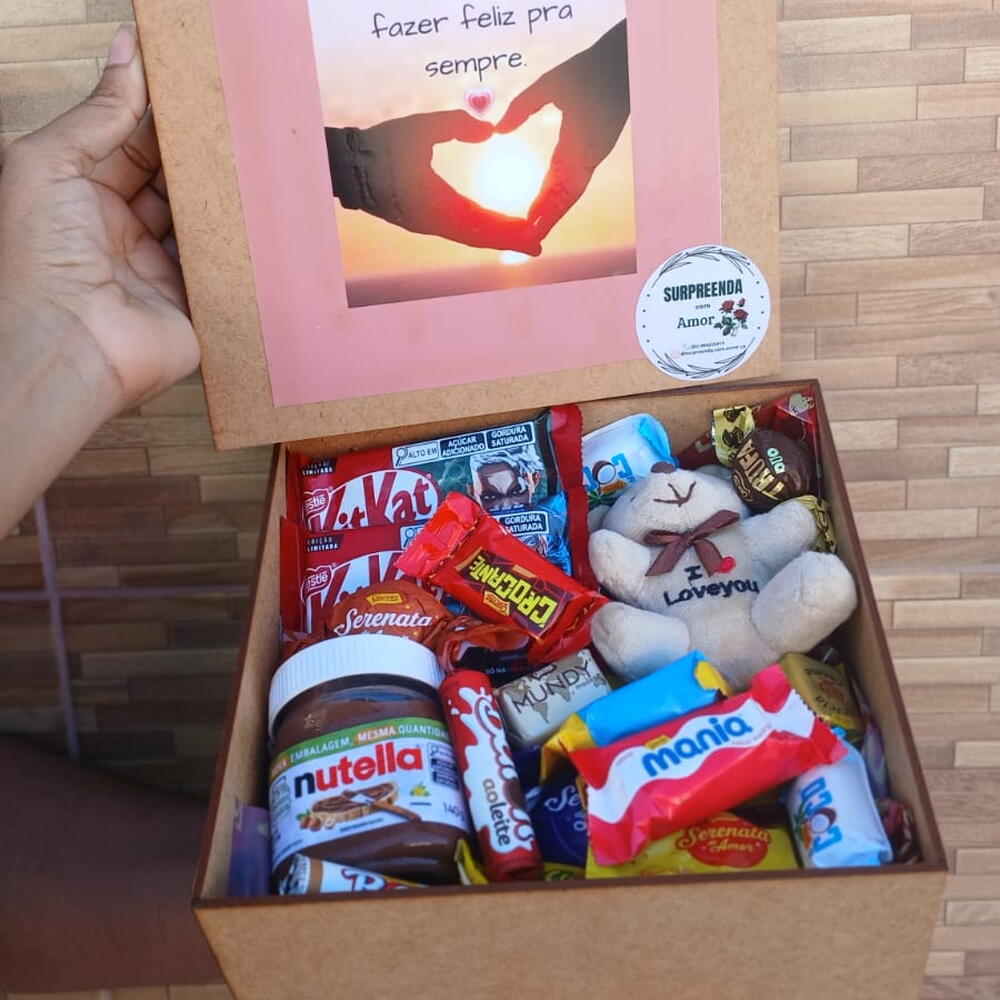 nutella - 1 un. ursinho - 1 un. kitkat - 2 un. bombons de chocolate - 12 un. frase e carta personalizada - 1 un.