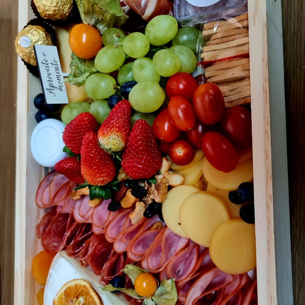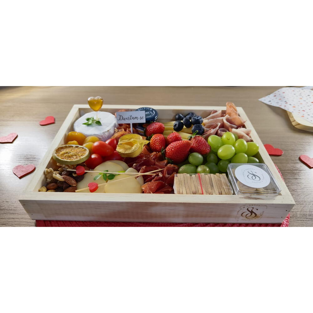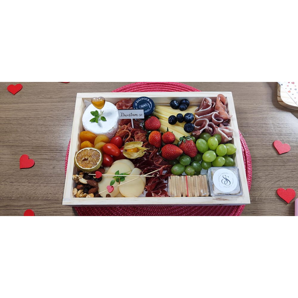 Caixa de Frios - Tabua de Frios Serve 2 pessoas como refeição e até 4 como aperitivo Lindamente decorada na tematica do Dia dos Namorados montados em linda caixa madeira pinus 30x 20 acompanha cartão + tag de/para