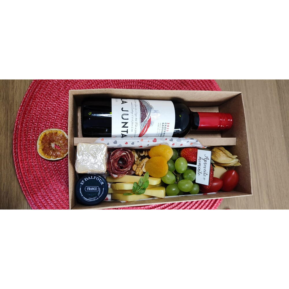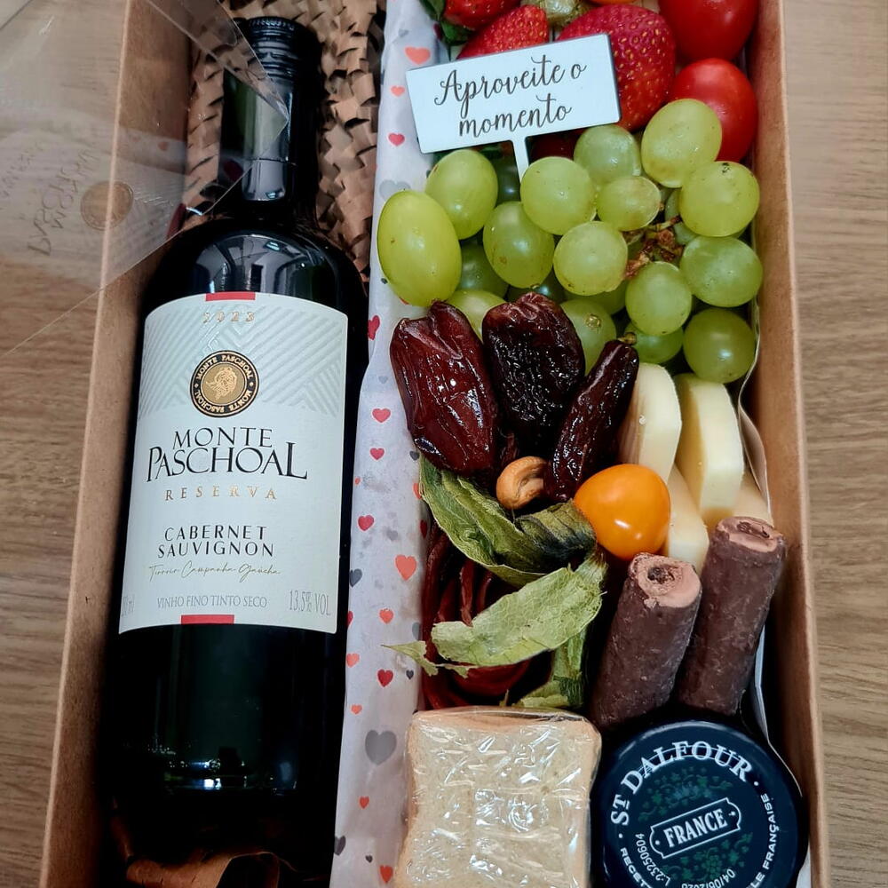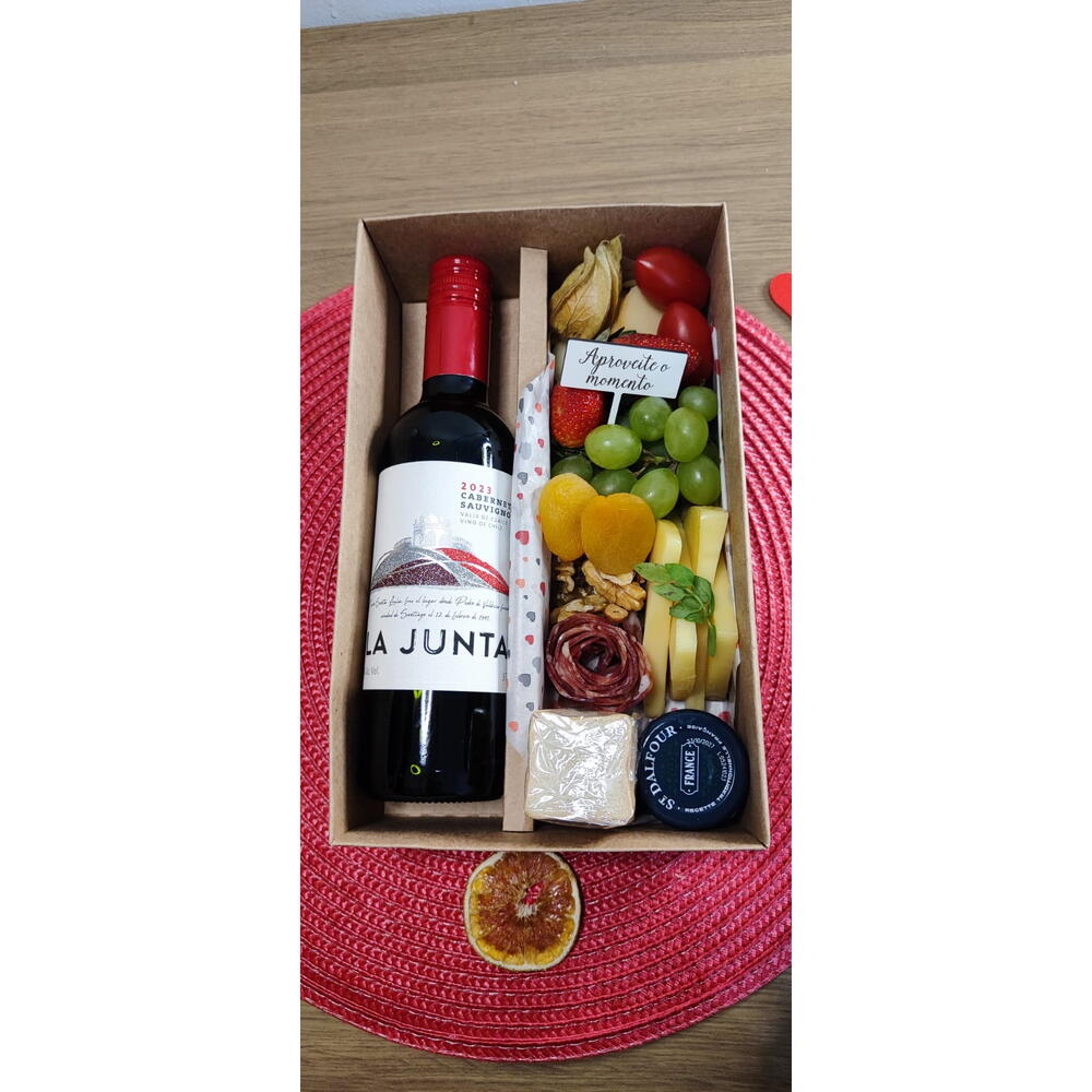 Meu Momento, Meu Sabor Um carinho só seu, servido com elegância e sabor. Essa caixinha foi criada pra quem quer celebrar o amor-próprio, brindar consigo mesmo ou simplesmente curtir um momento especial com tudo o que ama: queijos, frios, acompanhamentos e um mini vinho pra brindar à própria companhia. Ideal pra: autocuidado, surpresas discretas, mimos individuais Inclui mini vinho tinto/branco (à sua escolha) Mini seleção de frios, frutas e acompanhamentos Embalagem delicada e pronta pra presentear