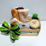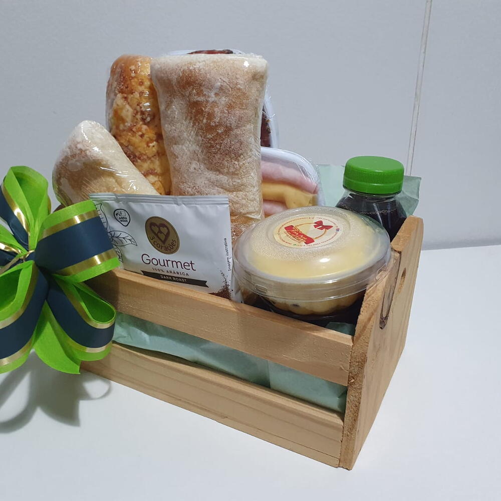 caneca - 1 un. presunto - 100 gr. suco - 1 un. salame - 100 gr. torrada - 1 un. blister de geleia - 2 un. cartão para mensagem - 1 un. polenguinhos - 2 un. drip coffee - 1 un. sachê de açúcar - 2 un. queijo prato - 100 gr. blister de margarina - 1 un. sachê de adoçante - 2 un. laço decorativo - 1 un. caixa de madeira ou cartonada - 1 un. mousse artesanal gourmet - 1 un. palha italiana gourmet artesanal - 1 un. celofane para fechamento - 1 un. pão tipo veneza - 1 un. pão tipo ciabata - 2 un. papel de seda ou folha de celofane - 1 un.