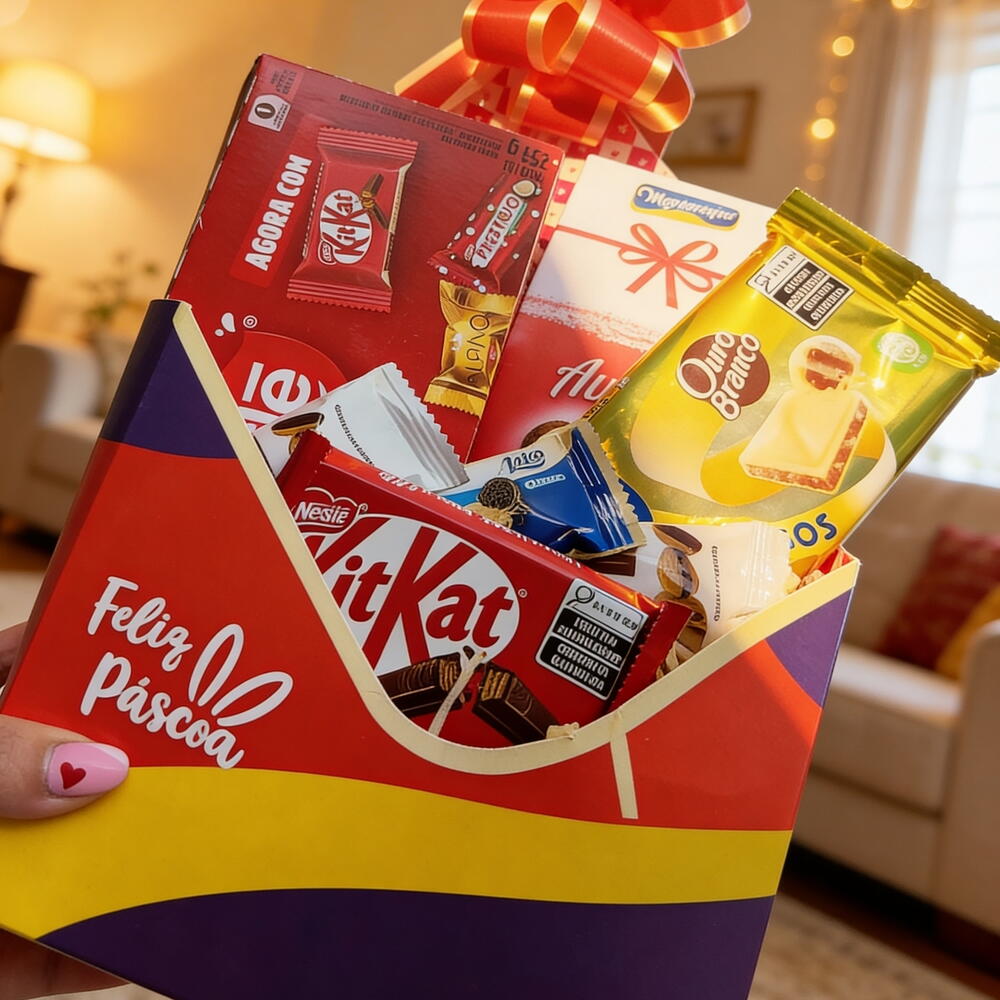 Surpreenda quem você ama com esta exclusiva cesta de chocolates sortidos, cuidadosamente selecionados para tornar a Páscoa ainda mais especial. A cesta inclui deliciosos bombons, tabletes e wafers das marcas mais queridas, como KitKat, Prestígio, Alpino, Ouro Branco e Oreo, totalizando 251g de puro prazer. Apresentada em uma embalagem sofisticada com um laço vermelho e um balão em formato de coração, esta cesta é o presente perfeito para demonstrar carinho e adoçar o momento. Características: - Seleção premium de chocolates Nestlé - Embalagem decorativa com laço e balão de coração vermelho - Ideal para presentear familiares, amigos ou colegas - Peso total: 251g Deseje uma Feliz Páscoa com estilo e sabor! Aproveite e garanta já a sua