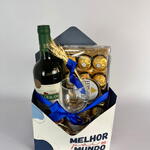 Surpreenda seu herói pessoal com esta bela cesta, a escolha perfeita para mostrar seu amor e apreço. A cesta contém uma caixa de envelope cartonada escrita Melhor pai do mundo, cheia de afeto e consideração. Acompanha um exclusivo vinho tinto nacional de 750 ml, um brinde sofisticado para marcar as ocasiões importantes. Junte-se a este brinde com uma elegante taça para vinho, feita para realçar o sabor da bebida. E para aquela doce surpresa, incluímos uma caixa de bombons Ferrero Rocher com 12 unidades, porque todo pai merece um mimo especial. Faça seu pai sentir-se o mais especial do mundo com esta cesta, um presente feito com carinho e pensado em cada detalhe.