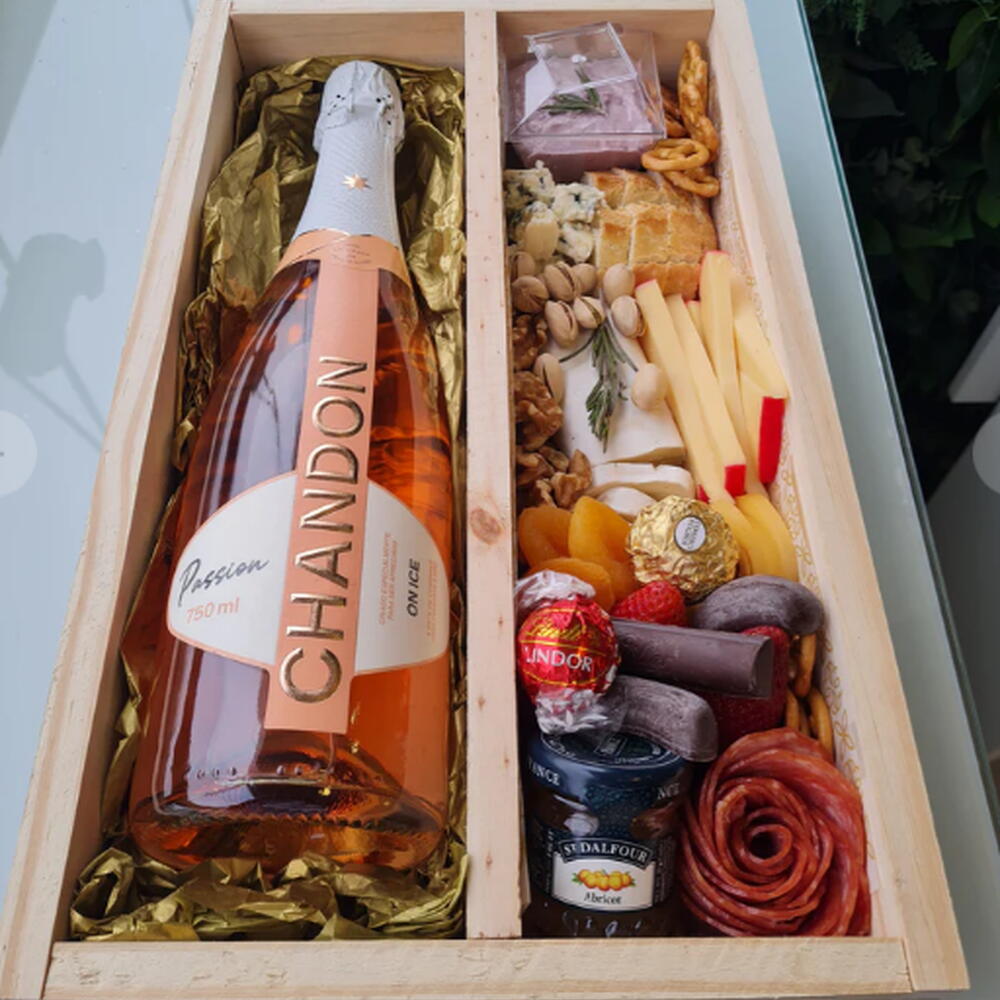 Desfrute de um presente divino repleto do melhor que a natureza tem a oferecer. Este conjunto de presente inclui mel puro - 1 un., uma seleção diversificada de queijos - 3 un., um mix de nuts apetitosas - 1 un., geleia francesa encantadora - 1 un., chocolate importado decadente - 1 un., flor de salame deliciosa - 1 un., garrafa aristocrática de espumante Chandon - 1 un., mini pretzels crocantes - 1 un., fatias de pão ciabatta fresco - 1 un. e uma mini colher meleira de bambu - 1 un. Cada item foi cuidadosamente escolhido para proporcionar uma experiência de sabores única e inesquecível. Presenteie com elegância e bom gosto!