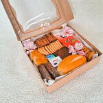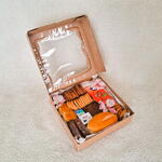 Descubra a paixão na nossa deliciosa Cesta de Chocolate. Reúne uma irresistível bolacha amanteigada, uma unidade de drip de café, uma refrescante água de coco, um rico brownie para a sobremesa, uma mini geleia para enriquecer o sabor, uma crocante torrada, uma unidade de mini manteiga, um mini cream cheese para dar cremosidade, todos cuidadosamente embalados numa cesta de kraft com visor e um toque final de fita de cetim. Uma seleção cuidadosa para proporcionar uma experiência saborosa e memorável.