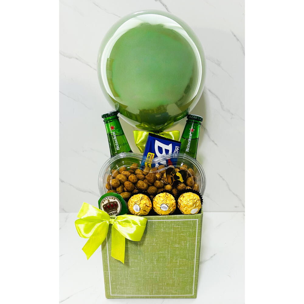 Esta Cesta para Homens é o presente perfeito para aqueles que apreciam o que há de melhor. Composta por 1 unidade de cerveja Heineken, para degustar em momentos especiais, 2 unidades de amendoim japonês, dando aquele toque exótico ao paladar, 1 unidade de bubble gum, trazendo um toque de diversão e 4 unidades de Ferrero Rocher, sofisticada iguaria para satisfazer seus desejos de chocolate. Todos estes itens estão cuidadosamente acomodados em uma elegante caixa, tornando este presente pronto para ser entregue e surpreender.