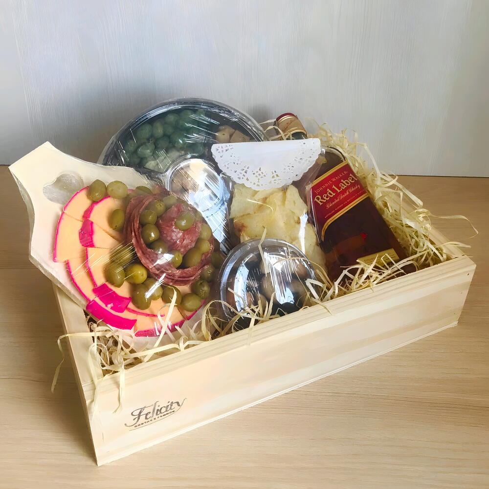 Caixa Red Label - Sofisticação para Ocasiões Especiais Para quem valoriza a excelência em cada detalhe, a Caixa Red Label é a escolha definitiva. Este presente sofisticado inclui um autêntico whisky escocês Johnnie Walker Red Label, acompanhando de uma tábua de frios finamente selecionados e uma variedade de petiscos saborosos. Perfeito para ocasiões especiais, essa combinação eleva qualquer celebração a um novo nível de requinte. Contém: 01 Tábua de frios : - Queijo do reino fracinado - Salaminho italliano - Pote de azdeitonas 01 Mix de amendoins e salgadinhos 01 mix de castanhas e passas 01 Batata sensções 01 Whisky Red Label 500mL 01 Caixote rústico 01 Cartão de Felicitações ATENÇÃO: Entrega diariamente das 06:00h às 20:00 h Entregas para 2ª FEIRA das 06:00 às 8:30h........necessário solicitar até às 16:30h do sábado Entregas para o DOMINGO....................................necessário solicitar até às 16:30h do sábado