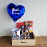 balão metalizado personalizado - 1 un. embalagem celofane - 1 un. cartão dedicatória - 1 un. laço rústico - 1 un. caneca em porcelana personalizada - 1 un. capuccino ou café - 1 un. chocolate doce mensagem (45g): você é especial - 1 un. chocolate classic (100g) - 1 un. sachês de acúcar - 2 un. caixa com 6 docinhos artesanais - 1 un. caixote de madeira- tamanho 10x20x10 cm - 1 un.