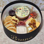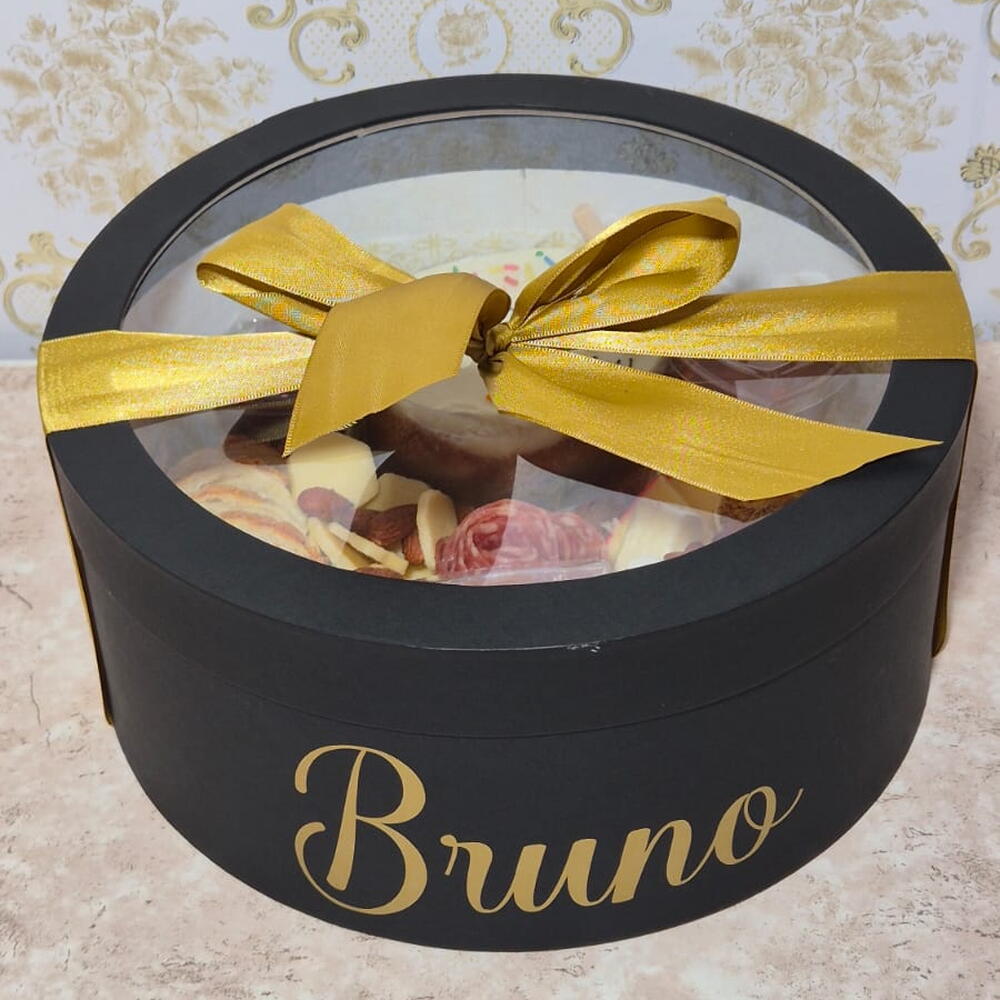geleia - 1 un. bombom - 1 un. mel - 1 un. queijos: brie - 1 un. pão ciabatta - 1 un. flor de salame - 1 un. pastinha salgada - 1 un. bolo bentô cake - 1 un. queijo gouda e parmesão - 1 un.