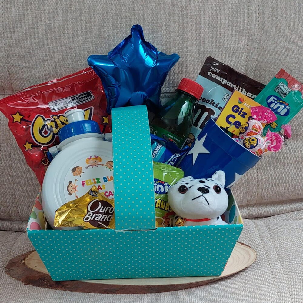 🎈 Cesta Infantil Azul — Dia das Crianças Cheia de cores, sabor e diversão! 💫 Vem com docinhos, salgadinhos, suquinho, pelúcia e balão — tudo embalado com muito carinho pra alegrar o dia dos pequenos! 💙✨