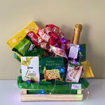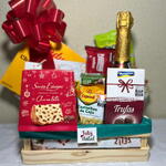 Presenteie alguém especial com nossa encantadora Cesta de Natal. Repleta de delícias, esta cesta contém um mini Panetone saboroso, uma garrafa de Sidra ou Suco de Uva para celebrar a ocasião, Amendoim salgado, irresistíveis Cookiens, Trufas de Chocolate para adoçar o paladar, um Tubete cheio de surpresas, um irresistível Pão de Mel, Biscoito Champagne para complementar e tudo disposto em um charmoso Caixote de Madeira. A cesta também vem com uma embalagem especial para garantir a apresentação perfeita. É o presente ideal para compartilhar a magia da temporada.