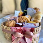 Desfrute de um elegante Cesta de Café da Manhã, repleta de deliciosos e frescos itens escolhidos a dedo. Este cesto inclui um croissant amanteigado, uma fresca uva, dois pães doces macios, um mini bolo delicioso, um waffle crocante, seis doces morangos, um drip coffee para desfrutar de um café fresco, um mini sonho perfeito para adoçar seu café da manhã, porção de mel em mini vidro, uma geleia de morango caseira, quatro tradicionais pães de queijo mineiro, um suco de uva integral de 200 ml, um sachê de cappuccino Três Corações e um balão foil personalizado. Tudo acondicionado numa cesta de taboa artesanal e completado com um cartão personalizado com foto para tornar esse presente ainda mais especial. Surpreenda alguém especial com esta cesta de café da manhã generosamente recheada!