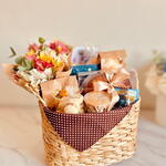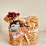 Desfrute de uma manhã deliciosa e aconchegante com a nossa cesta de café da manhã amanhecer! Repleta de sabores e texturas, esta cesta inclui uma variedade de comidinhas deliciosas Todos esses itens são cuidadosamente enviados em uma cesta artesanal de palha de taboa decorada com fita, tornando-a o presente perfeito ou uma maneira alegre de começar o dia. CORES DAS FLORES E DECORAÇÃO SUJEITAS A ALTERAÇÃO CONFORME DISPONIBILIDADE DO DIA. *** IMAGEM ILUSTRATIVA