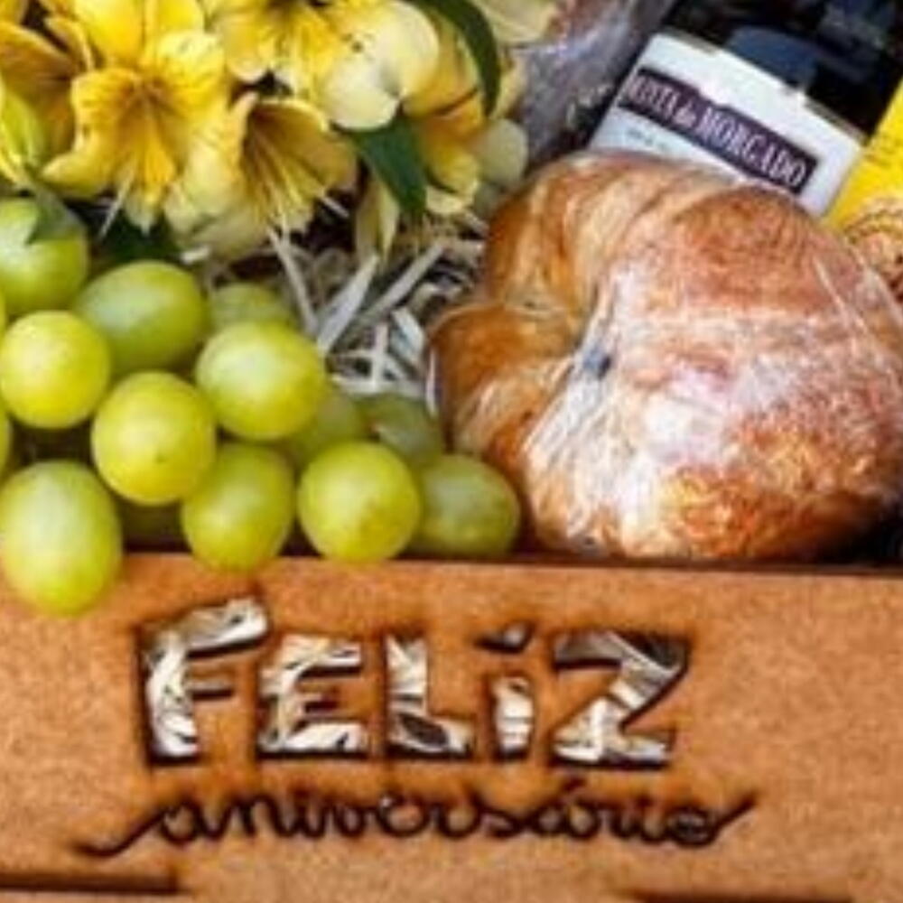 Surpreenda aqueles que você ama com esta linda Cesta de Aniversário! Composta por uma seleção excepcional de produtos, ela inclui um laço elegante, uma deliciosa baguete de parmesão, um arranjo delicado de astroméria e um nutritivo biscoito Belvita. A cesta também contém um sachê de capuccino para o deleite das manhãs, um croissant de manteiga fresquinha, suco natural de uva e uvas sem sementes para um toque de frescor. Todos esses itens são cuidadosamente acondicionados em uma embalagem de celofane fino, e apresentados em uma bela cesta artesanal de MDF. Este presente efetivamente transforma qualquer dia em uma celebração especial.