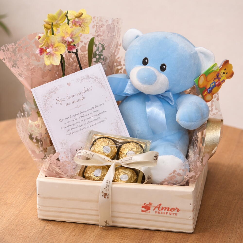 Uma forma delicada e inesquecível de dar boas-vindas a quem acaba de chegar ao mundo. A Cesta Boas-Vindas com Ursinho Orquídea é um presente de maternidade completo, pensado para emocionar pais, familiares e visitas especiais. Com ursinho macio, mini orquídea em tons suaves, chocolates finos e cartão especial de boas-vindas, é uma escolha elegante e cheia de significado. Ideal para maternidade, visita hospitalar ou envio direto para a casa da família. 🌸 Presente para recém-nascido 🎁 Cesta maternidade pronta para entregar 🚚 Entrega expressa 💛 Embalagem premium Amor Presente Garanta agora e surpreenda com um gesto que será lembrado para sempre.