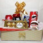 É o Presente completo e pronto pra impressionar! Perfeito para conquistar o sorriso de quem você ama! Contém: *Coca-Cola 350ml*Barra Hersheys 75g *Bis Original 100g *Batata Pringles 104g *Ferrero Rocher caixa c/8 bombons *Nutella 140g . Embalado com celofane transparente e laço. Garanta esta Cesta agora!