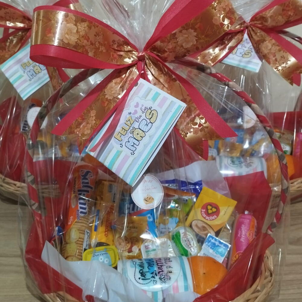 club social - 1 un. torrada - 1 un. geleia - 1 un. sachê de chá - 1 un. caneca de porcelana - 1 un. mini waffer - 1 un. sachês de adoçante - 2 un. sachês de açúcar - 2 un. bolacha salgada - 1 un. cereal matinal - 1 un. laços - 1 un. fatias de pão - 3 un. fruta da época - 1 un. biscoitos maria - 1 un. café solúvel ou capuccino - 1 un. bolacha recheada ou bolacha doce - 1 un. amanteigado de leite - 1 un. amanteigados banana c canela - 1 un. amanteigados chocolate - 1 un. bolinho - 1 un. doce ducream - 1 un. cesta - 1 un. pacote celofane - 1 un. papel colorido - 1 un.