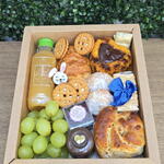 suco de laranja - 1 un. uvas - 1 un. torradas gourmet - 1 un. brigadeiro de pote - 1 un. croissant presunto e queijo - 1 un. geléia de frutas vermelhas - 1 un. pão de calabresa - 1 un. caixa kraft e acetato com tampa - 1 un. contendo bolo de cenoura com chocolate - 1 un. 2 mini dunuts - 1 un. biscoitos decorativos. - 1 un.