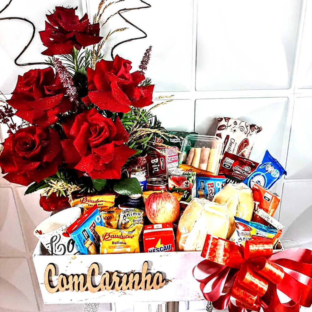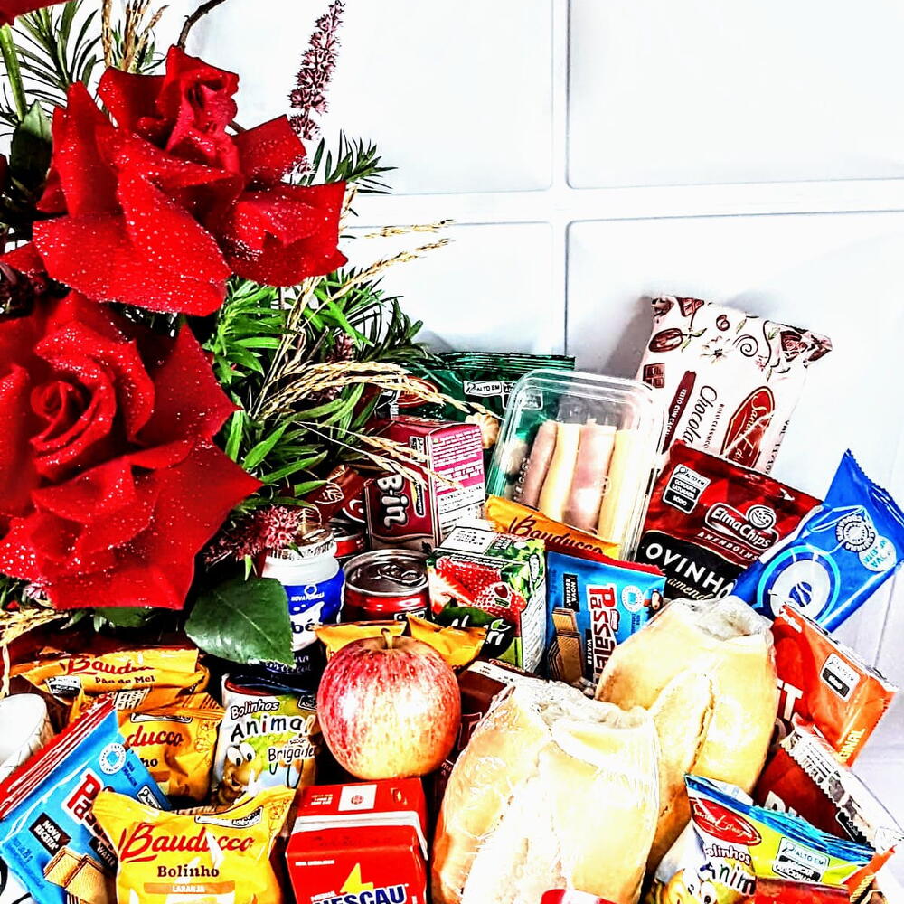 iogurte - 1 un. caneca - 1 un. maçã - 1 un. suco - 1 un. frios - 1 un. cesta - 1 un. cookies - 1 un. toddynho - 1 un. bolinhos - 2 un. ovinhos de amendoim - 1 un. pães - 2 un. nescau - 1 un. oreo - 1 un. tubin - 1 un. pit stop - 2 un. sequilhos - 1 un. cesta café da manhã luxo 30 itens. - 1 un. passa tempo - 1 un. bolo de chocolate ( santa edwiges) - 1 un. goiabinhas ( bauducco ) - 2 un. bolinhos ( santa edwiges) - 1 un. coca colas ( lata ) - 2 un. pão de mel ( bauducco ) - 2 un. buquê com 5 rosa importadas - 1 un.