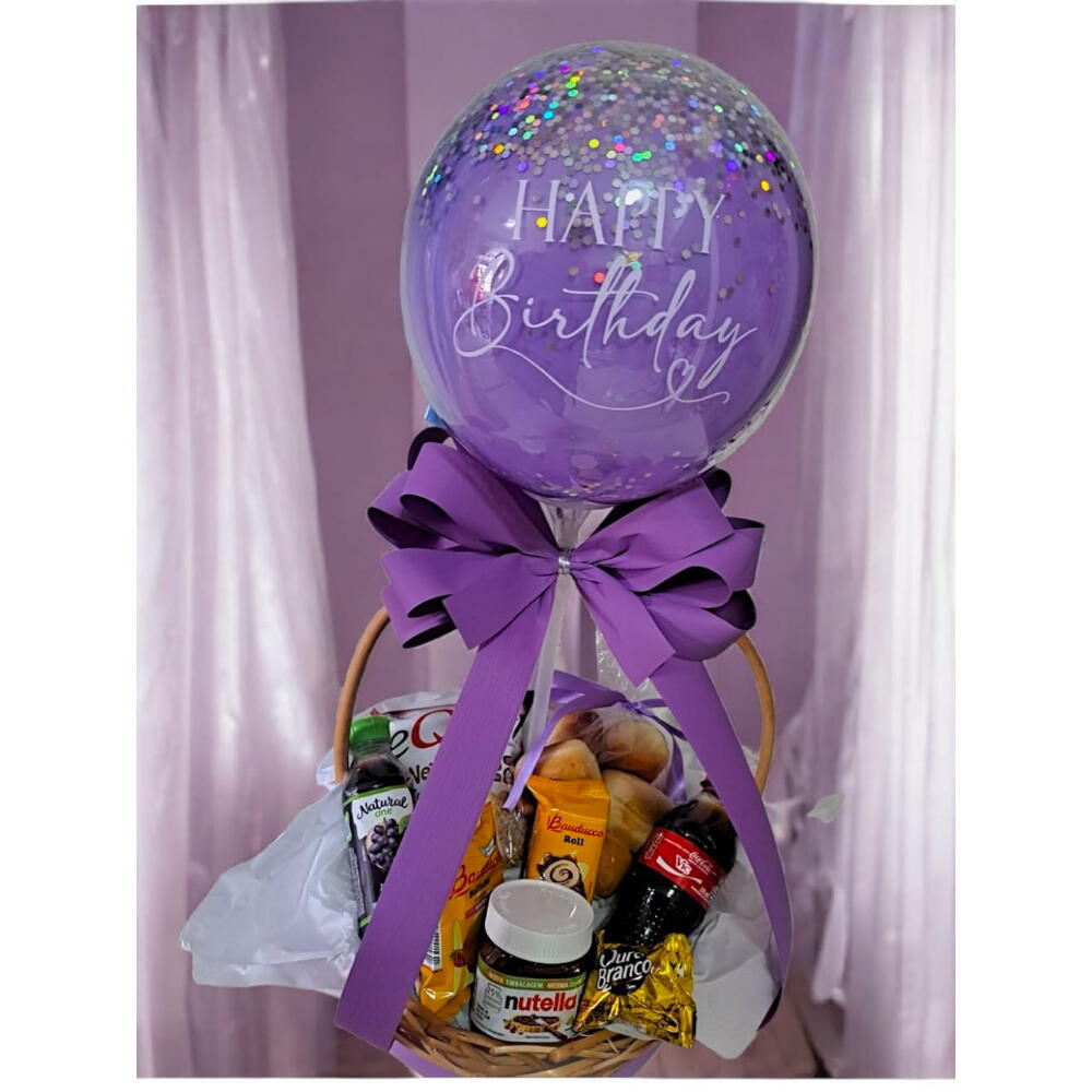 Este café da manhã da Cesta é o pacote perfeito para uma manhã deliciosa e cheia de surpresas. Ele vem com um balão Bubble personalizado para adicionar um toque de magia à sua refeição. Conte com 1 unidade de Nutella para adoçar seu dia, além de Bisnaguinhas para saciar sua fome. Acompanha 1 unidade de suco integral para balancear a refeição, além de uma irresistível Coquinha. O conjunto também inclui 1 unidade de Bolinho Bauducco e um Pão de mel, ambos perfeitos para um café da manhã indulgente. E não para por aqui, pode desfrutar de 1 barra de Equilibre para manter o equilíbrio nutritivo e de 1 unidade de Ouro Branco para um toque de luxo. Além disso, temos uma carta de cortesia para adicionar um carinho extra ao seu presente. Tudo isso vem em uma linda embalagem decorada com um laço artesanal. Perfeito para começar o dia de maneira especial.