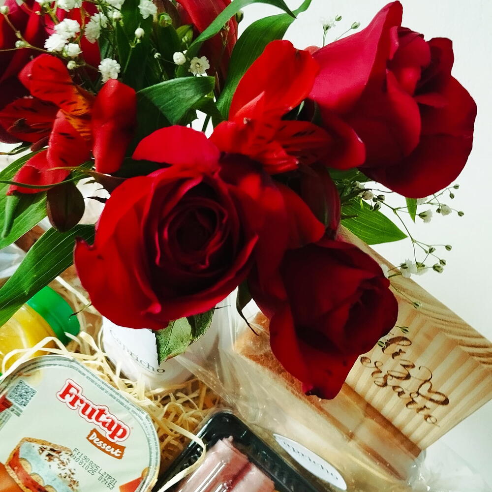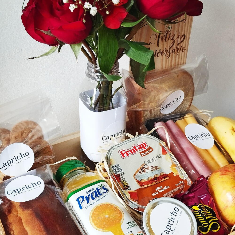 Desfrute de uma inesquecível Cesta de Café da Manhã, repleta de sabores variados e tradicionais. Esta deliciosa seleção inclui 2 unidades de suco de laranja fresco, 10 salgadinhos assados levemente picantes, 4 cookies tradicionais crocantes, 1 sonho irresistível, 2 doces carolina bem docinhos, 2 pedaços de bolo saborosos, 1 sonho de valsa para os amantes de chocolate, 10 bolachinhas de leite ideais para molhar no chá ou café e 2 palhas italianas com seu sabor único. E mais, a cesta é lindamente apresentada com um vaso de flor kalanchoe para alegrar o dia e apresentada numa bandeja de 30*35, finalizada com um laço personalizado e embalada num saco transparente. Seja para um presente ou para desfrutar na sua própria casa, esta cesta promete um início de dia delicioso!