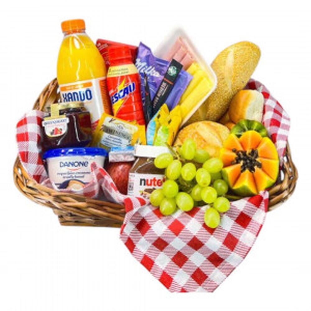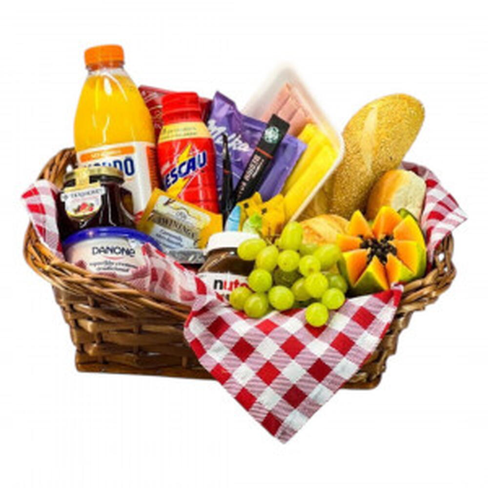 Aproveite a Cesta Café Pic Nic com seleção de frutas frescas, pães, frios, sucos e chocolates. Ideal para piqueniques, café da manhã ou presente diferenciado. Informações sobre Entrega --------------------------------------- * Entregamos para São Paulo, grande São Paulo e ABCD. * De segunda à sexta, entregamos em até 3 horas ou no mesmo dia, para pedidos feitos até às 15h00. * Sábados, entregamos no mesmo dia se o pedido for até às 10h00. nutella: 1 un. geleia: 1 un. requeijão: 1 un. torradas bauducco: 2 un. frios (mussarela e presunto): 1 un. tipos de pães : 3 un. bolinho bauducco : 2 un. suco 900 ml : 1 un. nescau garrafinha : 1 un. chá twinings : 1 un. barra chocolate milka : 1 un. polenguinho : 1 un. tipos de frutas (uva e mamão) : 2 un. barra de lindt : 1 un.