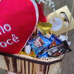 Delicie-se com uma cesta repleta de chocolates finos, trufas irresistíveis e bombons que derretem na boca. Perfeita para presentear ou para se presentear, esta cesta é um símbolo de doçura e elegância.