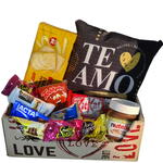 kit kat - 1 un. torrada - 1 un. toddynho - 1 un. almofada - 1 un. cesta love - 1 un. nutella pequena - 1 un. caixa bombom lacta - 1 un.