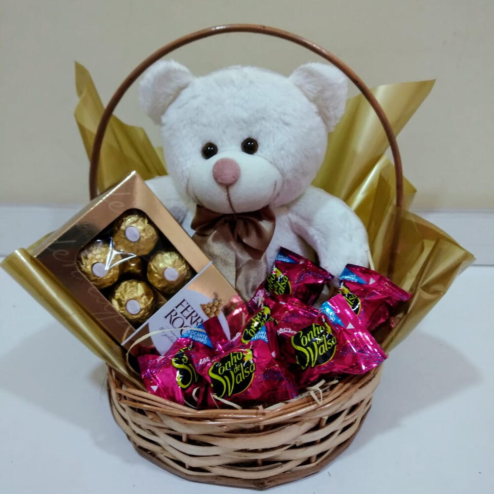 Surpreenda-se com essa maravilhosa Cesta de Chocolates! Perfeitamente embalada, ela contém uma unidade de Película Média, oito deliciosas unidades de Ferrero Rocher, e uma unidade do irresistível Sonhos de Valsa. Ideal para presentear em ocasiões especiais, desfrute das melhores marcas de chocolates nesta cesta excepcional. Faça alegria do seu dia ou de quem você ama com este verdadeiro manjar dos deuses.