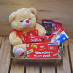 caixa de bombons nestle - 1 un. barra de chocolate sonho de valsa - 1 un. chocolate suflair - 1 un. urso de pelúcia fizzy - 1 un. chocolate lacta oreo - 1 un. chocolate nestlé classic prestígio - 1 un. barra de chocolate hershey's - 1 un. caixa litografada “com carinho pra você - 1 un.