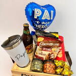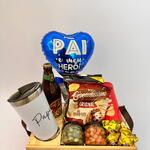 Descubra o prazer de desfrutar de uma cesta única. O nosso conjunto inclui um exclusivo caixote de pinho personalizado com uma frase especial. Apreciará a nossa seleção de snacks, incluindo uma cerveja artesanal colorado, uma porção de amendoim apimentado, amendoim tradicional, salgadinho crocantíssimo, batatinha Pringles e chips de Doritos. A cesta também inclui um copo térmico personalizado com uma frase para manter a sua bebida na temperatura perfeita e um balão temático para comemorar o Dia dos Pais. Como toque final, incluímos quatro bombons Ouro Branco para satisfazer a sua fixação por doces. A apresentação é complementada com um elegante saco de celofane e laço para tornar esse presente ainda mais especial. Uma cesta impecavelmente montada para desfrutar ou presentear alguém que você ama.