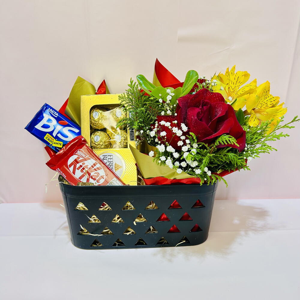 Presenteie alguém de quem você gosta com este apaixonante kit Flores Chocolate! Este presente único e requintado inclui 1 bela rosa, simbolizando o amor verdadeiro e eterno, aliado a uma seleção irresistível de chocolates. Desfrute de 1 unidade de Bis, 1 unidade de Kit Kat, e ainda, para adicionar sofisticação, 1 unidade de Ferrero Rocher composto por 8 deliciosos chocolates. É a combinação perfeita de beleza e sabor, ideal para emocionar as pessoas mais especiais.