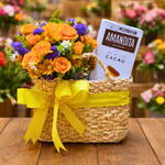 Cesta com Flores na Caneca Floresça e Amandita Recheada