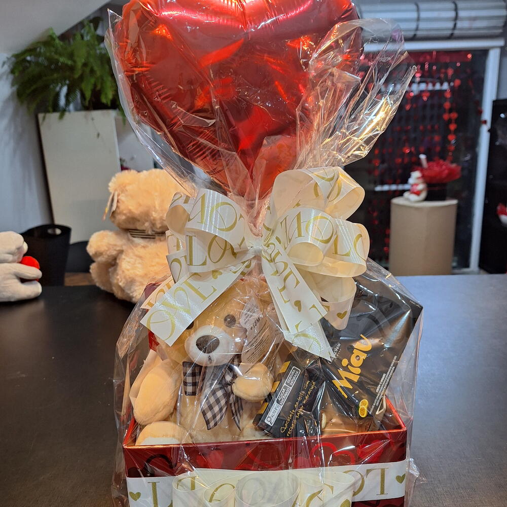Presenteie seus entes queridos com esta magnífica Cesta de Chocolate. O presente perfeito para qualquer ocasião, esta cesta decorada vem com um encantador urso de pelúcia e um delicioso chocolate da cacau show. Um coração metalizado de 10 cm adiciona um toque de fascínio enquanto a elegante embalagem de celofane e laço elegante completam a apresentação. Uma verdadeira festa para os olhos e para o paladar.