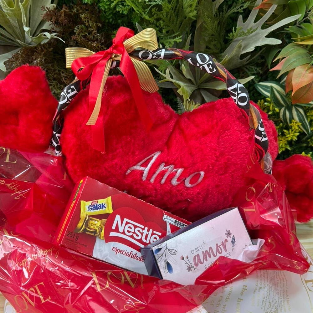 pelúcia de coração - 1 un. caixa de bombom nestlé - 1 un. serenata de amor - 4 un.