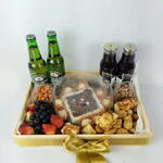 Cesta de Aniversario com Cerveja Bolo e Petiscos na Bandeja
