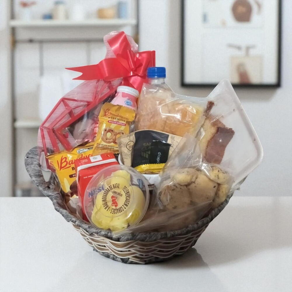 Aprecie os momentos de alegria da manhã com nossa refinada Cesta de Café da Manhã. Esta luxuosa cesta inclui 1 Biscoito Salgado, 1 Biscoito da Baducco, 1 suculenta Fatia de Bolo, 1 irresistível Capuccino, 1 perfeito Café solúvel, 1 nutritivo Danone, 1 Suco refrescante, 1 delicioso Achocolatado e por último, mas não menos importante, 1 Porção de Queijo e Presunto. Este é o complemento perfeito para o seu despertar, criado especialmente para fazer o seu dia começar da melhor maneira possível.
