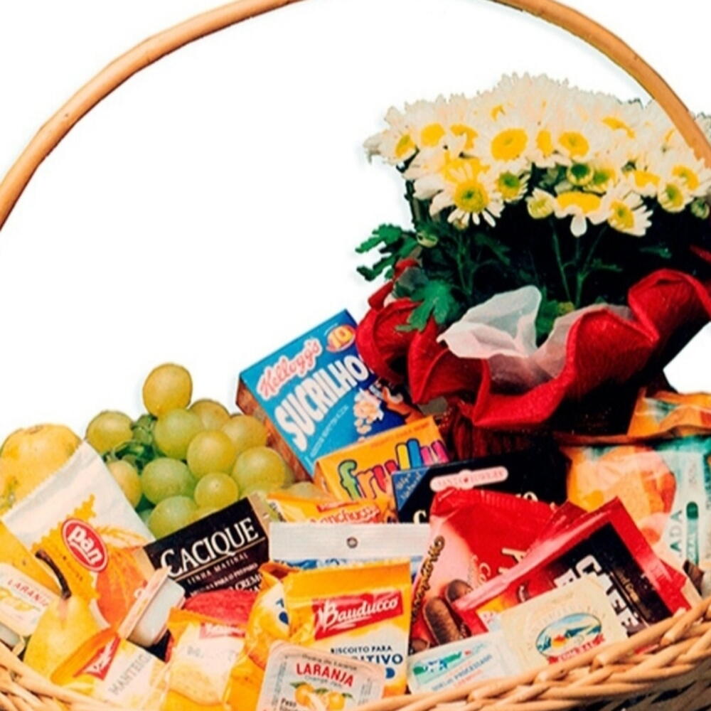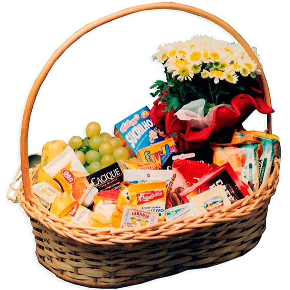 mamão papaya - 1 un. capuccino sachê - 1 un. adoçante sachê - 2 un. laço especial - 1 un. margarina mini - 1 un. achocolatado caixinha - 1 un. uvas sem sementes (01 copo) - 1 un. pão de mel embalado - 1 un. celofane embalagem - 1 un. café solúvel sachê - 1 un. suco de fruta caixinha - 1 un. sucrilhos sachê - 1 un. torrada mini natural - 2 un. biscoito amanteigado mini - 2 un. biscoito cream cracker mini - 2 un. chá sachê - 2 un. geléia de fruta mini - 1 un. ducream mini - 1 un. açúcar sachê - 2 un. margaridas no vasinho - 1 un.