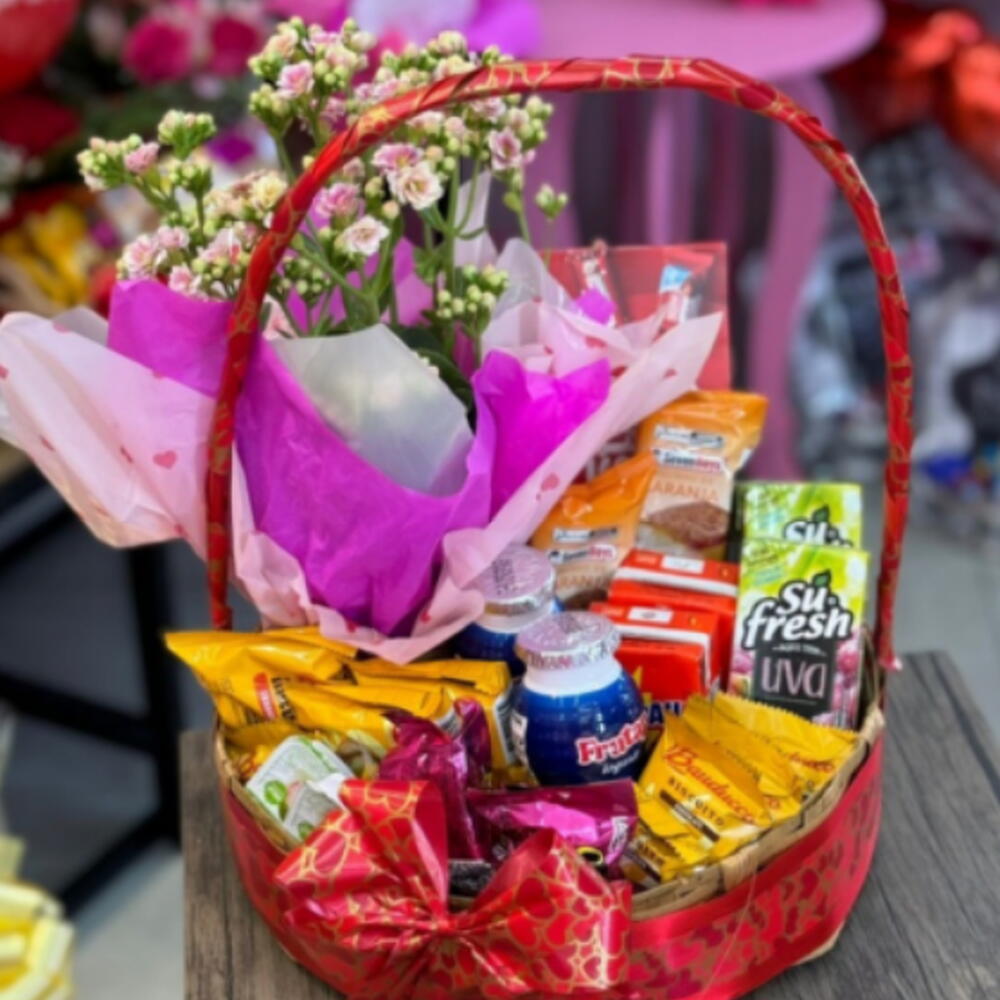 A Cesta de Café da Manhã G + Kalandiva é uma combinação perfeita de sabor e beleza. Com uma variedade generosa de itens deliciosos e uma charmosa Kalandiva para decorar, é ideal para surpreender com carinho, elegância e um toque floral especial.